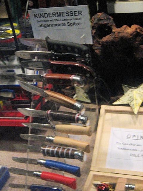 Etwas abseits vom Geschehen befand sich ein (allerdings geschlossenes) Geschäft für Waffen und Trachtenmode, in dessen Schaufenster neben diversen Amokgegenständen auch etwas Platz gefunden hatte, das ich eigentlich aus meiner Kindheit etwas anders in Erinnerung hatte: