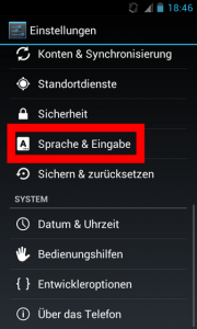 Wenn man aber des Öfteren längere Texte (und seien’s nur mehrteilige SMS-Nachrichten) schreiben muss und sich partout nicht damit anfreunden kann, einfach mal einen Notizblock mitzunehmen, ist man natürlich froh, wenn die Tastatur versucht mitzudenken. Zum Glück kann man die Android-Tastatur-app einfach austauschen, zum Beispiel gegen Spracheingabe oder eben eine andere Tastatur — die Einstellung “Sprache & Eingabe” macht es möglich: