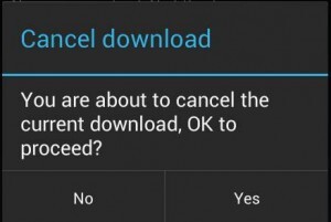 Was passiert bei Druck auf “Yes”? Wird der Download oder das Abbrechen fortgesetzt? Und wenn ja, warum nicht?