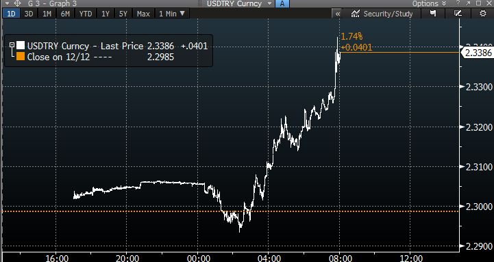 …, der binnen eines Tages mit ebenfalls erschreckender Geschwindigkeit gefallene Kurs der türkischen Lira …