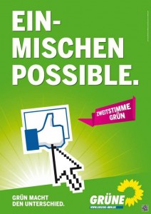 “Einmischen” wird hier also versinnbildlicht mit dem nach oben gereckten Facebook-Daumen namens “Gefällt mir”, das vorgeblich angestrebte Mitspracherecht des Bürgers heruntergebrochen auf die großzügige Genehmigung, auf einem “sozialen Netzwerk” irgendeinen Blödsinn (Angriffskrieg, Stuttgart 21, die Grünen) per Klick gut zu finden, denn ein “Gefällt mir nicht” ist nicht vorgesehen und Facebook so egal wie wahrscheinlich den Grünen. Gern dafür, dagegen zu sein, niemals aber dagegen, dafür zu sein.