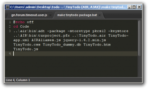 Auf diesem Bild zu sehen sind unter anderem die Möglichkeit, mehrere Dateien gleichzeitig (in Zeilen, Spalten oder als Gitter) anzuzeigen, und die “Minimap”, eine Art schnelle Übersicht darüber, wo in der Datei man sich gerade befindet, am rechten Fensterrand. Was optisch “fehlt”, ist die aus anderen Editoren bekannte Möglichkeit, Codeblöcke einzuklappen, aber da dies ohnehin normalerweise nicht automatisch geschieht, fällt dieser Verlust nicht ins Gewicht, zumal man ihn mit einem Plugin kompensieren kann. (Es existiert auch eine Möglichkeit, für die Einführung dieser Funktion zu stimmen.) — Nachtrag: Mit Stand Juli 2012 ist das code folding bereits seit einigen Monaten standardmäßig vorhanden.
